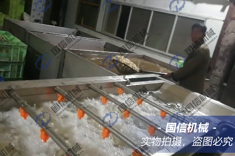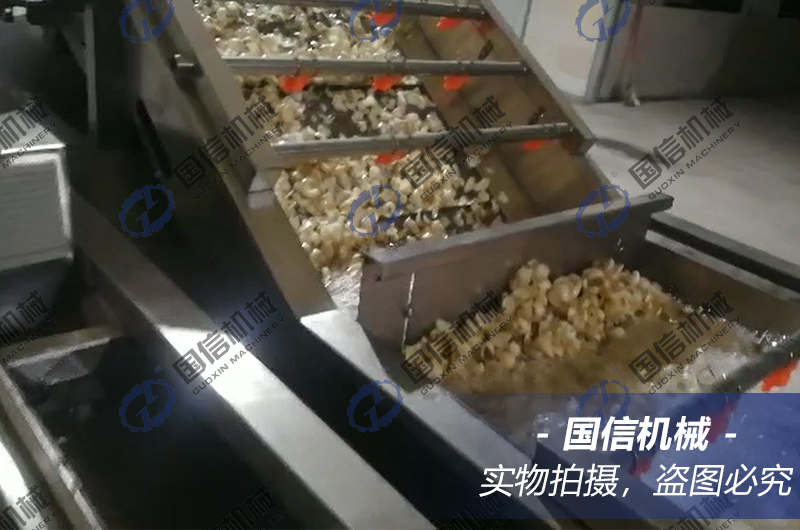 冷水漂洗:漂燙好的鱗片立刻投入氣泡清洗機的冷水中漂洗至冷,瀝干表面的水分。