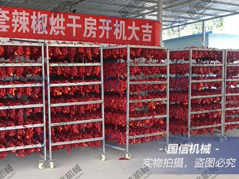 1.低溫定色階段(50-55℃): 初始階段采用較低溫度,緩慢蒸發(fā)大部分游離水分,此階段需保持中等排濕強(qiáng)度。目標(biāo)是鎖定辣椒的天然艷紅色澤,防止因表皮過快收縮而導(dǎo)致的顏色發(fā)暗。